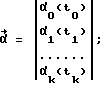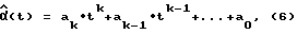 Для примера остановимся на вычислении ak коэффициентов. В матричном виде уравнение (6) для нескольких измеренных значений можно записать в виде![]() где ![]() ![]() ![]() k – порядок полиномиальной модели; 0 (t0), 1 (t1), …, k (tk) – величины измеряемых угловых коэффициентов в моменты времени t0, t1, …, tk.