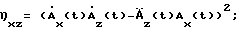 соответствующими произведениями сигналов Ax, Ay, Az с их вторыми производными. Выделенные сигналы с выходов устройств 42, 44, 46 поступают на вход сумматора 22 и перемножителей 19, 20, 21, осуществляющих их попарное перемножение. Двухкомпонентные сигналы
