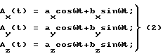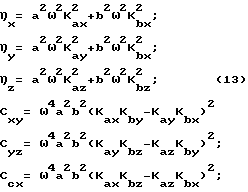 Литература:1. Williams J.L., “Jour. of Atm. and Terr. Phys., vol. 28, 1966, N 2, p. 199. 2. Ефремов Е.Ф. Устройство измерения эллиптически поляризованного поля. Авторское свидетельство 398009, 1978. 3. Пасечник И.П. Характеристика сейсмических волн при ядерных взрывах и землетрясениях. М.: Наука, 1970. ПРИЛОЖЕНИЕ 1 к заявляемому изобретению “СПОСОБ ИЗМЕРЕНИЯ ПАРАМЕТРОВ ПОЛЯРИЗАЦИИ ВЕКТОРНОГО СИГНАЛА” Зададим эллипс поляризации (ЭП) векторного сигнала любой природы в параметрической форме (см. например [П1] стр.240): ![]() где A’x(t), A’y(t) – составляющие в системе координат X’OY’, повернутой относительно системы приемных датчиков OXYZ так, чтобы направления ОХ’ и OY’ совпали с направлением большой полуоси а и малой полуоси b в ЭП (см. фиг. П1 (12)). Измеренные ортогональными датчиками компоненты сигнала тогда запишутся через параметры ЭП в виде: ![]() где ai=aKai – проекция большой полуоси ЭП на i-ю ось; bi=bKbi – проекция малой полуоси ЭП на i-ю ось; Kai, Kbi – направляющие косинусы большой и малой полуосей ЭП относительно осей координат. Формируем группу однокомпонентных сигналов: ![]() Для этого найдем первую и вторую производные компонент вектора сигнала: ![]() Подставив значения производных (4) в выражение (3), получим: i= 2(a2i+b2i) (5)Формируем группу двухкомпонентных сигналов: ![]() Формируем группу смешанных сигналов: Cij= i j– ij= 4(aibj-ajbi)2 (7)Из выражений (5), (6), (7) следуют равенства: ![]() Cij= 4a2b2; (9)![]() ![]() ![]() С целью нахождения направляющих косинусов большой и малой полуосей ЭП составим систему из шести уравнений с шестью неизвестными: ![]() Решением системы (13) являются: ![]() ![]() ![]() ![]() ![]() ![]() Направляющие косинусы нормали Kni найдем из правила определения векторного произведения двух векторов, заданных своими координатами для единичных ортов системы X’OY’, которые совпадают по направлению с полуосями ЭП, записываем: ![]() где – орты системы координат OXYZ.