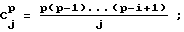 число сочетаний из p по j;