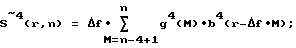 При s = 0 выражение (13) упрощается. В этом случае, например, для кубического сплайна (p-1 = 3) имеем![]() ![]() Fm(g(n)) = Fm(S(n))/um4, (15) где um4 = 1 – vm2 4(r) отлично от нуля на участке (0, 4 f) и на различных интервалах наблюдения определяется следующим образом:[fn, fn+1] (когда r [ f n, f (n+1)], r = f (n+ ), ![]() [0,1]):![]() [fn+1, fn+2] (когда r [ f (n+1), f (n+2)], r = f (n+1+ ):![]() Учитывая, что носитель B-сплайна supp b4( ) = (0,4![]() f) и b4( ) симметричен относительно точки f p/2, получим для интервалов[fn+2, fn+3] (когда r [ f (n+2), f (n+3)], r = f (n+2+ )):![]() [fn+3, fn+4] (когда r [ f (n+3), f (n+4)], r = f (n+3+ ):![]() Тогда ![]() где ![]() = e2 i/N; N – объем массива (количество спектральных компонент). Если в выражении (13) M < 0, то можно принять g(M) = 0.