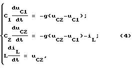 (57) Реферат: Изобретение относится к радиотехнике. Генератор хаотических колебаний содержит устройство с отрицательным сопротивлением (1), емкость (3) и индуктивность (4). Введено устройство с отрицательной индуктивностью (2). Технический результат – обеспечение возможности возбуждения хаотических колебаний в двухполюсной резонансной системе с последовательным резонансом с повышением температурной стабильности за счет независимости от параметров транзисторов эквивалентных сопротивлений устройств с отрицательными сопротивлением и индуктивностью. 1 з.п. ф-лы, 3 ил. Изобретение относится к радиотехнике и может быть использовано в качестве источника хаотических электромагнитных колебаний. Также известен генератор хаотических колебаний (А.Р.Волковский. Хаотический релаксационный генератор. Изв. вузов “Прикладная нелинейная динамика”, 1994, Т. 2, N 2, с. 50), представляющий собой блокинг-генератор, в коллекторную цепь транзистора которого включен дополнительный конденсатор. Однако колебательная система этих генераторов должна иметь более двух отводов для соединения с остальными элементами схемы. Это не позволяет использовать данные генераторы для возбуждения хаотических колебаний в колебательных системах, имеющих только одну пару внешних выводов. Наиболее близким по технической сущности к заявляемому устройству является генератор хаотических колебаний (Т.Мацумото. Хаос в электронных схемах. ТИИЭР, 1987, Т. 75, N 8, с. 76-79, рис. 19, 20), содержащий устройство с отрицательным сопротивлением, первый вывод которого соединен с первым выводом емкости, второй вывод которой соединен с первым выводом индуктивности. Недостатком этого генератора хаотических колебаний является то, что его построение основано на использовании параллельного резонансного контура, что не позволяет применить данную схему для возбуждения хаотических колебаний в резонансных системах с последовательным резонансом, например в последовательном LC-контуре. Целью изобретения является возбуждение хаотических колебаний в двухполюсной резонансной системе с последовательным резонансом. Цель изобретения достигается тем, что в генератор хаотических колебаний, содержащий устройство с отрицательным сопротивлением, первый вывод которого соединен с первым выводом емкости, второй вывод которой соединен с первым выводом индуктивности, дополнительно введено устройство с отрицательной индуктивностью, выводы которого соединены с выводами устройства с отрицательным сопротивлением, второй вывод которого соединен со вторым выводом индуктивности, причем вольт-амперная характеристика устройства с отрицательным сопротивлением такова, что напряжение на выводах этого устройства является однозначной функцией протекающего через него тока. С целью повышения температурной стабильности устройство с отрицательным сопротивлением содержит первый и второй транзисторы, эмиттеры которых являются соответственно первым и вторым выводами устройства с отрицательным сопротивлением, коллектор первого транзистора соединен с базой второго транзистора и эмиттером третьего транзистора, база и коллектор которого соединены с выходом первого источника тока, эмиттером четвертого транзистора и первым выводом первого резистора, второй вывод которого соединен с выходом второго исто