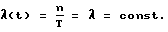 Передачу последовательности пачек импульсов с каждого контролируемого пункта осуществляют в случайные моменты времени![]() Случайные моменты времени передачи Т определяются независимыми моментами включения ключа 3 на каждом КП. Таким образом, сигналы со всех КП будут распределены на оси времени и их совпадение в интервале времени t = , будет соответствовать вероятностному закону Пуассона, т.к. соблюдают следующие условия:(Е.С. Вентцель Теория вероятностей. “Наука”, 1964, М): 1. Поток событий (сигналов, поступающих с КП) – ординарен. 2. Поток событий – стационарен. 3. Поток событий – не имеет последействия. Условие ординарности означает, что сигналы от каждого рассредоточенного КП приходят на общий приемник 6 поодиночке, а не парами, тройками и т.д. Условию стационарности удовлетворяет поток событий, вероятностные характеристики которого не зависят от времени. Для стационарного потока характерна постоянная плотность потока – среднее число событий (сигналов), поступающих в приемное устройство в единицу времени , (1)где n – число КП (сигналов) – постоянная величина; Т – период следования событий (сигналов) – постоянная величина. Из (1) следует, что = const и означает постоянство событий (сигналов) в единицу времени.