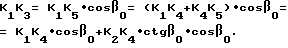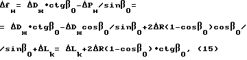 Из треугольников K1K3K5 и К2К4К5 следует, что![]() Так как К1K4 = 0,5 (Dк – Dк0); K2K4 = 0,5 (Lк0 – Lк), то 0,5 P = 0,5(Dk-Dk0) cos 0+0,5(Lk0-Lk) sin 0.Так как в блоке 6 (см. фиг. 1) выполняется операция C + E, то в наружном кольце Pн= Dk cos 0– Lk sin 0. (12)Но так как Dk= Dж-2 R(1-cos 0), (13)то Pн= Dж cos 0-2 R(1-cos 0)cos 0– Lksin 0 (14)Так как в блоке 5 (см. фиг. 1) выполняется операция A + B, то на выходе блока 7 будет сигнал смещения линии контакта ![]() знак которого соответствует действительному. Способ измерения наружного однорядного кольца, которое является половиной двухрядного, заключается в том, что кольцо базируют базовым торцом и наружной цилиндрической поверхностью на неподвижные опоры и измеряют отклонения диаметра желоба дорожки качения измерительными устройствами (см. фиг. 1) 3 (A и B), отклонение комплектовочного размера измерительными устройствами 4 (C и E) вдоль (см. фиг. 2) прямых (O1K3), составляющих с перпендикуляром (O1N2) к оси кольца углы контакта 0, в блоке 5 суммируются сигналы измерительных устройств 3 (A + B), в блоке 6 суммируются сигналы измерительных устройств 4 (C + E), в блоке 7 алгебраически суммируются сигналы с блоков 5 и 6, причем сигнал с блока 5 с коэффициентом передачи, пропорциональным 0,5 ctg 0, а сигнал с блока 6 с коэффициентом передачи, пропорциональным минус 0,5/sin 0.Отклонение комплектовочного размера наружного однорядного кольца будет определяться выражением Pн= Dk cos 0-2 lk sin 0, (16)где lk – отклонение расстояния между базовым торцом и линией контакта.