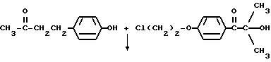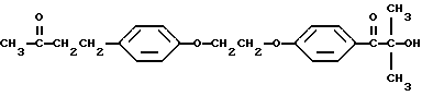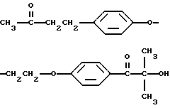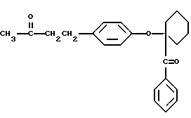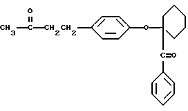 Пример 13В этом примере описывается способ получения трансорбера ультрафиолетового излучения, 4-(4-гидроксифенил)бутан-2-он-2959 (хлорзамещенный). В круглодонной колбе на 250 мл, снабженной холодильником и магнитной мешалкой, смешивают следующие компоненты: 17,6 г (0,1 моль) селективного для длины волны сенсибилизатора, 4-(4-гидроксифенил)бутан-2-она (Aldrich Chemical Company, Milwaukee, Wisconsin); 26,4 г (0,1 моль) фотореактора, хлорзамещенного DARCUR 2959 (Ciba-Geigy Corporation, Hawthorne, New York); 1,0 мл пиридина (Aldrich Chemical Company, Milwaukee, Wisconsin) и 100 мл безводного тетрагидрофурана (Aldrich Chemical Company, Milwaukee, Wisconsin). Смесь кипятят с обратным холодильником в течение 3 ч, и растворитель частично удаляют при пониженном давлении (уменьшение на 60%). Реакционную смесь затем выливают в ледяную воду и экстрагируют двумя порциями по 50 мл диэтилового эфира. После сушки над безводным сульфатом магния и удаления растворителя остается 39,1 г белого порошка. Перекристаллизация порошка из 30% этилацетата в гексане дает 36,7 г (91%) белого кристаллического порошка, имеющего точку плавления 142-3oC. Реакцию суммируют следующим образом: ![]() ![]() Получаемый продукт реакции имеет следующие физические параметры: ИК [NUJOL MULL] max 3460, 1760, 1700, 1620, 1600 см-11H ЯМР [CDCl3] м.д. 1,62 [c], 4,2 [м], 4,5 [м], 6,9 [м] м.д.
