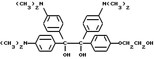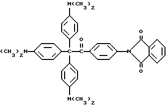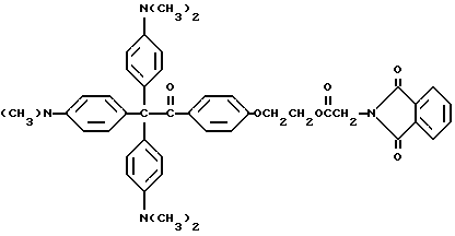 В химический стакан на 100 мл помещают следующие компоненты: 4,0 г -циклодекстрина, имеющего группу дегидратированного фталоилглицина-2959; и 50 мл воды. Воду нагревают до 70oC, в этой точке раствор становится прозрачным. К раствору затем добавляют 0,9 г (2,4 ммоль) кристаллического фиолетового (Aldrich Chemical Co., Milwaukee, Wisconsin), и раствор перемешивают в течение 20 мин. Затем раствор фильтруют. Осадок промывают фильтратом и затем сушат в вакуумном сушильном шкафу при 84oC. Получают фиолетово-синий порошок с выходом 4,1 г (92%). Получаемый продукт реакции имеет следующие параметры:УФ-спектр: ДМФ max 610 нм (cf cv max 604 нм).