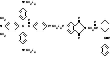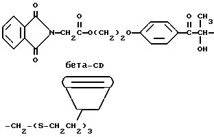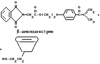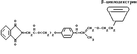 Пример 12В этом примере описывается способ ассоциации красителя и трансорбера ультрафиолетового излучения со средством молекулярного включения. Более особенно в этом примере описывается способ ассоциирования красителя кристаллического фиолетового со средством молекулярного включения, -циклодекстрином, ковалентно связанным с трансорбером ультрафиолетового излучения, дегидратированным фталоилглицином-2959 примера 11.
