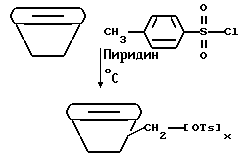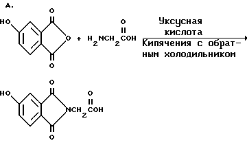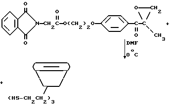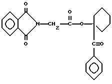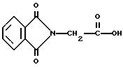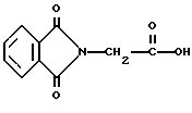 Пример 9Этот пример описывает способ дегидратации фталоилглицина-2959, полученного в примере 8. В круглодонной колбе на 250 мл, снабженной устройством для улавливания воды Дина и Старка с холодильником, смешивают следующие компоненты: 21,6 г (0,05 моль) фталоилглицина-2959; 100 мл безводного бензола (Aldrich Chemical Co. , Milwaukee, Wisconsin) и 0,1 г п-толуолсульфоновой кислоты (Aldrich Chemical Co., Milwaukee, Wisconsin). Смесь кипятят с обратным холодильником в течение 3 ч. После сбора в ловушке 0,7 мл воды растворитель удаляют в вакууме, получая 20,1 г (97%) белого твердого продукта. Однако анализ этого белого продукта показал, что реакция дает только от 15 до 20% целевого продукта дегидратации. Реакцию суммируют следующим образом: ![]() ![]() Получаемый продукт реакции имеет следующие физические параметры: ИК [NUJOL) max 1617 см-1 (C=C-C=O).