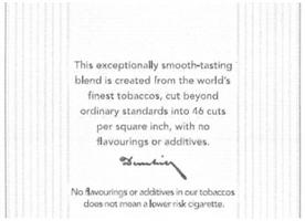 (732) Правообладатель: (750) Адрес для переписки: (526) Неохраняемые элементы товарного знака: (511) Классы МКТУ и перечень товаров и/или услуг: 34 – табак и табачные изделия, сигареты, сигары, сигариллы, табак, табак для самокруток, трубочный табак.