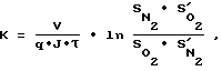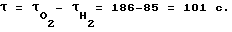 В результате проведенных на газовом хроматографе исследований получены следующие данные:давление на входе Pр = 1,75 105 Па;давление на выходе P0 = 1,00 105 Па;время удерживания кислорода ![]() время удерживания водорода ![]() время сорбции кислорода углем ![]() Площади пика кислорода на входе и выходе хроматографической колонки: ![]() площади пиков азота на входе и выходе хроматографической колонки: ;объем кислорода, введенного в 0,5 мл воздуха с потоком газа-носителя V = 0,5 10-6 0,2095 = 1,0475 10-7 м3;поправочный коэффициент ![]() На основании полученных данных определяют константу скорости сорбции кислорода для пробы угля пл. Волковский: ![]() Время на определение константы требуется не более 20 мин, при этом точность определения увеличивается в 2 раза. Формула изобретения