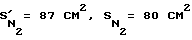 соответственно площади пика азота на входе и выходе хроматографической колонки, см2;