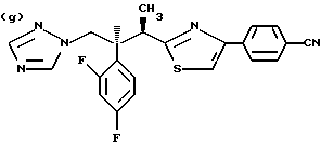 (б) (2RS, 3RS)-3-(4-[4-Цианфенил]тиазол-2-ил)-2-(2, 4-дифторфенил)-1-(1H-1,2,4-триазол-1-ил)-2-бутилдигидрофосфат (см. схему 13 в конце описания).