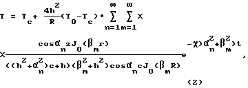 (57) Реферат: Изобретение относится к медицине, в частности к судебной медицине. Способ характеризуется тем, что определение давности смерти включает регистрацию перепадов ректальной температуры и температуры окружающей среды, измерение толщины трупа, построение математической модели, расчет и анализ полученных значений температур, при этом, если это труп новорожденного, дополнительно измеряют окружность головы, груди и живота, измеряют длину трупа и его массу, а измерение перепадов указанных температур осуществляют в две стадии, на первой стадии измерения проводят в течение не менее двух часов на месте происшествия, а затем, в морге, дополнительно определяют коэффициент теплообмена (внешней теплопроводности в краевых условиях) и средний радиус толщины трупа для осуществления расчета, составляют зависимость температуры от времени, а время наступления давности смерти определяют путем сравнения начальной температуры трупа с температурными данными таблицы. Способ обеспечивает сокращение сроков и точность определения. 2 з.п. ф-лы, 2 табл. Изобретение относится к области медицины, в частности к судебной медицине, и касается способа определения давности наступления смерти. Одной из основных проблем судебно-медицинской науки и практики, способствующих раскрытию преступлений против жизни, является объективная конкретизация сроков давности наступления смерти. Существует большое число способов, включающих процесс моделирования динамики изменения температуры трупа во времени и направленных на повышение точности определения времени смерти. Известен способ определения давности наступления смерти, включающий регистрацию перепада температур трупа и окружающей среды на месте происшествия, при котором дополнительно определяют разницу между нормальной температурой человеческого тела и температурой трупа, после чего определяют температуру трупа в условиях исследования, затем труп охлаждают до температуры, равной разнице между температурой трупа и перепадом температур между температурой человеческого тела и окружающей среды на месте происшествия, и ведут охлаждение до достижения перепада температур между трупом и окружающим воздухом на месте происшествия, а по времени охлаждения трупа определяют давность наступления смерти (SU 959749, A 61 B 10/00, 1982 г.). Известный способ основан на моделировании процесса охлаждения трупа. Однако способ сложен в осуществлении. Кроме того, ввиду искусственного создания условий теплообмена между трупом и средой анализ полученных данных не является достаточно точным. Известен способ определения давности наступления смерти, включающий регистрацию перепада температуры трупа, температуры окружающей среды, измерение массы тела, его толщины, математическое моделирование динамики температуры в постмортальном периоде путем создания бесконечного цилиндра, имитирующего процесс изменения температуры исследуемого трупа, построение графика динамики температуры от времени и анализ полученных данных (Толстолуцкий В.Ю. Математическое моделирование динамики температуры в постмортальном периоде для определения давности наступления смерти. Автореф. дис. на соискание ученой степени д. м. н.- М.: НИИСМ, 1995). Измерения проводились методом динамической термометрии в печени, бедре, прямой кишке путем п
