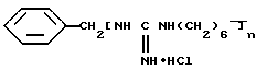 Гуанидированный и додецилированный сополимер полигексаметиленгуанидина с полиэтиленимином состава 4:1 получают следующим образом:К раствору 88,5 г (0,5 моля) ПГМГ в 100 мл воды добавляют при перемешивании по каплям 9 г (7,5 моля) эпихлоргидрина (ЭХГ) и полученная смесь была оставлена на ночь до полного исчезновения запаха ЭХГ. После этого к ней добавляют при перемешивании раствор 86 г ПЭИ в 100 мл воды и выдерживают при комнатной температуре сутки до прекращения роста [ ] = 0,7 дл/г.