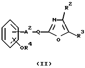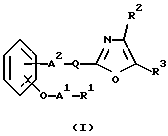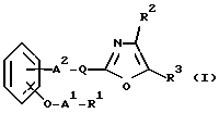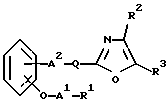 ![]() где R1 – карбокси или низший алкоксикарбонил; R2 – фенил или низший алкилфенил; R3 – фенил или низший алкилфенил; А1 – низший алкилен; А2 – химическая связь или низший алкилен; -Q- обозначает ![]() или ![]() ![]() цикло(низший)алкан или цикло(низший)алкен, каждый из которых может иметь один или два заместителя, выбранных из группы, включающей эпокси, гидрокси и низший алкокси, и его фармацевтически приемлемая соль. 2. Соединение по п. 1, в котором R1 – карбокси или этерифицированный карбокси, R2 – фенил или низший алкилфенил, R3 – фенил или низший алкилфенил, А1 – C1-С3 алкилен, А2 – химическая связь или C1-С3 алкилен, -Q- обозначает ![]() ![]() цикло(низший)алкан, который может иметь заместитель, выбранный из группы, включающей эпокси, гидрокси и низший алкокси или цикло(C5-С6)алкен, или ![]() ![]() цикло(низший)алкан, который может иметь один или два заместителя, выбранных из группы, включающей эпокси, гидрокси или цикло(C5-С6)алкен, или ![]() ![]() цикло(низший)алкан. 3. Соединение по п.2, в котором R1 – карбокси или низший алкоксикарбонил, А1 – метилен и А2 – химическая связь или метилен. 4. Соединение по п.3, в котором R1 – карбокси, R2 – фенил или низший алкилфенил, R3 – фенил или низший алкилфенил, А1 -метилен, А2 – метилен, -Q- обозначает ![]() 5. Соединение по п.4, которое выбирают из группы, содержащей 1) натрий [3-[[(1S)-2-(4,5-дифенилоксазол-2-ил)-2-циклопентен-1-ил]метил]фенокси]ацетат, 2) натрий [3-[[(1S)-2-(4,5-дифенилоксазол-2-ил)-2-циклогексен-1-ил]метил]фенокси]ацетат, 3) натрий [3-[[(1S)-2-(4,5-дифенилоксазол-2-ил)-2-циклопентил-1-ил]метил]фенокси]ацетат, 4) натрий [3-[[(1S)-2-(4,5-дифенилоксазол-2-ил)-2-циклогексил-1-ил]метил]фенокси]ацетат. 6. Соединение формулы ![]() где R2 – фенил или низший алкилфенил; R3 – фенил или низший алкилфенил; R4 – водород или низший алкил; А2 – химическая связь или низший алкилен; -Q- обозначает ![]() или ![]() ![]() цикло(низший)алкан или цикло(низший)алкен, каждый из которых может иметь заместитель и его соль. Приоритет по пунктам и признакам: 20.12.1993 по пп.1-6; 07.11.1994 по пп.1-6 – уточнение признаков. РИСУНКИ