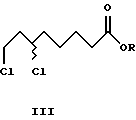 Пример 9К раствору 2,4 г (11,0 ммоль) метил-(+)-8-хлор-6- гидроксиоктаноата (+)-VIII (R= Me) и 0,04 г (0,5 ммоль) пиридина в 8 мл толуола медленно добавляли раствор 1,6 г (13,5 ммоль) тионилхлорида в 5 мл толуола. Кипятили с обратным холодильником в течение 1 ч. После охлаждения до комнатной температуры добавили к реакционной смеси 20 мл ледяной воды, отделили органическую фазу, промыли 10 мл воды и высушили сульфатом магния. Растворитель упаривали в вакууме. Получили 2,0 г (81% от теор.) метил-(-)-6,8-дихлороктаноата (-)-III (R=Me), [ ]20D = -30,0o (c=1; бензол).