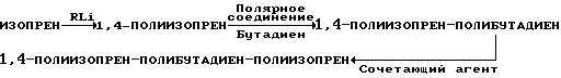 Мономеры (1) и (3) могут быть полимеризованы или одновременно или ступенчатым образом, в зависимости от желательного положения остаточной ненасыщенности после гидрирования. Если желательно статистическое расположение ненасыщенности, то оба мономера полимеризуются вместе, чтобы дать статистический сополимер. Если желательно иметь функциональную группу только на одном конце, то мономеры полимеризуются ступенчато в желаемом порядке, чтобы получить двойной блок- сополимер. Если нужно иметь функциональные группы на обоих концах, тогда первым полимеризуется сопряженный диен формулы (1), а за ним диен формулы (3). Затем к “живущему” аниону присоединяют связующий агент, например, фенилбензоат или метилбензоат, чтобы получить желаемый тройной блок-сополимер. Альтернативно, диен формулы (1) может быть добавлен к “живущему” двойному блоку, чтобы получить тройной блок. Четвертый подход может позволить поместить функциональную группу в центр полимерной цепи. В этом случае первым полимеризуется диен формулы (3), за ним полимеризуется диен формулы (1) и затем третий блок диена формулы (3) присоединяется связующим агентом или через живущий анион двойного блока. Кроме того, могут применяться комбинации вышеуказанных подходов.