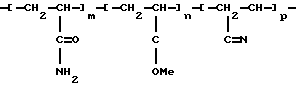 ![]() где m – акриламид; n – акриловая или метакриловая кислота; р -акрилонитрил; Me – Н и/или катион щелочного металла, при следующем содержании мономерных звеньев, мас.%: Акриламид – 25 – 90 Акриловая или метакриловая кислота – 10 – 55, Акрилонитрил – 0 – 30 и с концентрацией сополимера в рабочих растворах 0,1-5,0 мас.%. РИСУНКИ