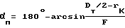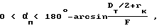Первым необходимым условием запирания капельной фазы является наличие треугольного профиля внутренней поверхности при условии, что высота и шаг профиля больше размера капельной фазы (в противном случае поверхность является “гладкой”). В данном случае по критерию угла влета, изменяющегося в пределах (и равного величине угла между направлением распространения макрочастицы и нормалью к поверхности профиля, расположенной в радиальной плоскости корпуса) можно выделить три группы макрочастиц. Для первой группы угол влета изменяется в пределах п> > 0, где п – угол при вершине треугольного профиля. Указанные макрочастицы после соударения с поверхностью выступа отражаются от последнего и соударяются с поверхностью соседнего выступа, отражаются от него и под углом 2 п– 1 распространяются в направлении выходного торца, т.е. они являются незапертыми после столкновения с треугольным профилем (см. фиг. 4). Для второй группы угол влета изменяется в диапазоне 2< 2 п, и макрочастицы после столкновения с выступами профиля обратно отражаются в направлении влета, т.е. являются запертыми. Для третьей группы угол влета изменяется в диапазоне , и макрочастицы “запираются” в пределах соседних выступов. Максимальную величину выступов hп max, если во втором варианте профиля выбирают такой, чтобы в результате столкновений при входе макрочастиц третьей группы внутрь треугольного профиля они потеряли первоначальный импульс. Величину hп max можно уменьшить в два раза, если учесть, что реальный профиль имеет вид, изображенный на фиг. 5, поэтому макрочастица, отразившись от области К, испытывает еще nст столкновений при выходе из треугольного профиля. Таким образом, для запирания макрочастиц на треугольном профиле (фиг. 5) необходимо устранить первую группу макрочастиц. Рассмотрим условия их запирания. Последнее осуществляется тем, что, во-первых, угол влета макрочастиц увеличивается от величины, заключенной в диапазоне 0 < < п после первого столкновения с треугольным профилем до величины, заключенной в диапазоне = п 2 п и при втором столкновении макрочастиц с треугольным профилем их новый угол влета = п 2 п соответствует уже второй группе макрочастиц. Во-вторых, тем, что макрочастицы отражаются по закону tg = Kвtg , где и – углы падения и отражения соответственно, Kв – коэффициент восстановления (Кв~0,5). При этом началу запирания соответствует случай, когда после первого столкновения с профилем частицы в области rNТ начинают распространяться радиально, а не к выходному торцу. Причем по мере уменьшения п у них появляется компонента скорости к входному торцу плазмовода. Этому условию соответствует верхняя величина п, равная ,где Dт – поперечный размер зоны транспортирования, rк – величина радиуса катода (мишени), F – величина отрезка прямой, проходящей через торцевую рабочую поверхность в точке Dт/2+rк и точкой касания к поверхности плазмовода в области цилиндра rNТ. По мере дальнейшего уменьшения п капельная фаза начинает испытывать уже два столкновения в области между соседними выступами профилями, т. е. на одно больше чем при отсутствии профиля. Этому условию соответствует верхняя величина п, равная .