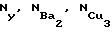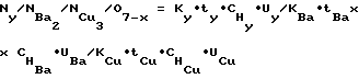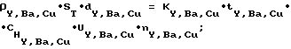 Таким образом, величина потенциала Uсм.т за время транспортирования плазмы должна находиться в области оптимального значения, т.е. должна быть практически постоянной. Последнее наблюдается, если , где RКП-сопротивление участка корпус – плазма, Oм; Lг– индуктивность цепи разряда, Гн. В противном случае, если , емкость Cп успевает разрядиться за время транспортирования до неоптимальной величины смещения (Uсм.опт +20B). Неравенство кроме емкости Сп определяется еще величиной Rкп, которая должна иметь максимально возможное значение. Последнее оптимизируется распределением магнитного поля ФТ(см) между областью транспортирования (смешения ) в слое Ленгмюра и областью конденсации Фконд.Данный способ иллюстрируется следующими примерами. ПРИМЕР N 1. Осуществлялось нанесение покрытия Y1Ba2Cu3O7-x в вакууме на сверхвысоковакуумной установке импульсно-плазменного нанесения покрытий. Откачка технологической камеры и трехканального устройства осуществлялась криогенным насосом до давления 10-7 Па. Затем осуществлялось возбуждение трех пространственно локализованных вакуумных дуг путем пробоя межэлектродных промежутков в трех генераторах плазмы с расходуемыми катодами из Y, Ba, Cu. Возбуждение вакуумной дуги осуществлялось расфокусированным лазерным излучением длительностью л= 10 нс при выполнении условия л<< г, при этом образовавшийся поток лазерной плазмы направляли в анодную область разряда, затем перекрывали зону фокуса лазерного измерения путем формирования в анодной области разряда скачка потенциала ( Uа) или рычагом-заслонкой. При этом возбуждение вакуумных дуг в парах бария и меди осуществлялось синхронно, а возбуждение вакуумной дуги в парах иттрия – асинхронно исходя из порядка расположения подрешеток формируемой кристаллической элементарной ячейки слоистого вещества покрытия Y1Ba2Cu3O7-x. Число подобных циклов (m) последовательности возбуждения вакуумных определялось из равенства dя m l, где dя – размер элементарной ячейки в направлении роста покрытия, l – толщина покрытия. Затем осуществлялось генерирование потоков плазмы Y, Ba и Cu, при этом химический состав многокомпонентного покрытия твердофазных компонент Y1Ba2Cu3O7-x задавался из условия![]() где – концентрации химических элементов Y, Ba, Cu в многокомпонентном покрытии; KY, KBa, KCu – коэффициенты эрозии плазмообразующих веществ Y, Ba, Cu, [г/Кл]; tY, tBa, tCu – коэффициенты транспортирования потоков плазмы Y, Ba, Cu; и UY, UBa, UCu – величины емкостей (Ф) и напряжения накопителей (В) соответственно. Концентрация O7-x кислорода газообразной компоненты задавалась импульсным напуском реактивного газа. При этом генерируемая последовательность импульсов плазмы твердофазных элементов Y, Ba, Cu задавалась исходя из порядка чередования подрешеток формируемой кристаллической структуры (1, 2, 3) элементарной ячейки сверхпроводника (см. фиг. 23, 24). А число импульсов плазмы каждой подрешетки nY, nBa, nCu определялось из равенства![]() где Y(Ba)(Cu) – плотность материала мишени (Y, Ba, Cu соответственно) кг/м3; S – площадь поперечного сечения зоны смешения, м2; dY,(Ba) (Cu) – размер соответствующей подрешетки в направлении роста, м; KY(Ba)(Cu) – коэффициент эрозии в вакуумной дуге вещества подрешетки (Y, Ba, Cu) соответственно, г/К; – величина емкости накопителя вакуумной дуги Y, Ba, Cu; UY,(Ba) (Cu) – величина изменения напряжения накопителя вакуумной дуги на