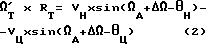 На фиг. 1 обозначены:VЦ и VН – модули векторов скоростей цели и носителя, RT и RA – дальности от носителя до точек PT и PA, Ц и Н – углы векторов скоростей VЦ и VН, Т и Н – углы визирования точек PT и PA,PН – центр тяжести носителя. Пусть Т= А+![]() (1).