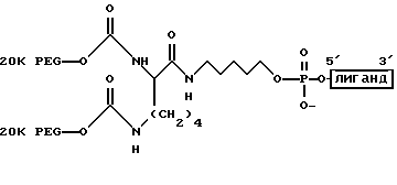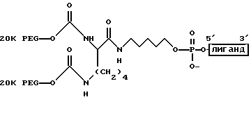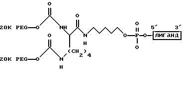 Следующей задачей настоящего изобретения является разработка Комплексов, содержащих одну или более чем одну Нуклеиновую Кислоту-Лиганд VEGF, ковалентно сшитую с Неиммуногенным Соединением Высокой Молекулярной Массы или Липофильным Соединением. Такие Комплексы имеют одно или более чем одно из следующих преимуществ перед Нуклеиновой Кислотой-Лигандом VEGF, не соединенной с Неиммуногенным Соединением Высокой Молекулярной Массы или Липофильным Соединением:1) усовершенствованные фармакокинетические свойства и 2) усовершенствованная способность к внутриклеточной доставке или 3) усовершенствованная способность направления к мишени. Комплексы, дополнительно соединенные с Липидной Конструкцией, имеют такие же преимущества. Эти Комплексы или Липидные Конструкции, содержащие Нуклеиновую Кислоту-Лиганд VEGF или Комплексы, могут быть выгодными из-за одного, двух или трех из этих преимуществ. Например, Липидная Конструкция по настоящему изобретению может состоять из а) липосомы, б) лекарственного средства, которое инкапсулировано во внутренней части этой липосомы, и в) Комплекса, в котором содержится Нуклеиновая Кислота-Лиганд VEGF и Липофильное Соединение, причем компонент Нуклеиновой Кислоты-Лиганда VEGF соединен с внешней стороной Липидной Конструкции и выступает из нее. В этом случае Липидная Конструкция, содержащая Комплекс, будет 1) обладать усовершенствованными фармакокинетическими свойствами, 2) обладать усиленной способностью к внутриклеточной доставке инкапсулированного лекарственного средства и 3) специфически направляться в предварительно выбранное местоположение in vivo, где экспрессируется VEGF, с помощью присоединенной к внешней стороне Нуклеиновой Кислоты-Лиганда VEGF. В предпочтительном воплощении данного изобретения предлагается способ усовершенствования фармакокинетических свойств Нуклеиновой Кислоты-Лиганда VEGF путем ковалентного сшивания Нуклеиновой Кислоты-Лиганда VEGF с Неиммуногенным Соединением Высокой Молекулярной Массы или Липофильным Соединением с образованием Комплекса и введения этого Комплекса пациенту. Далее изобретение относится к способу усовершенствования фармакокинетических свойств Нуклеиновой Кислоты-Лиганда VEGF посредством дополнительного соединения этого Комплекса с Липидной Конструкцией. В другом воплощении Комплекс по настоящему изобретению содержит Нуклеиновую Кислоту-Лиганд VEGF, ковалентно присоединенную к Липофильному Соединению, такому как глицеролипид, или Неиммуногенному Соединению Высокой Молекулярной Массы, такому как полиалкиленгликоль или полиэтиленгликоль (ПЭГ). В этих случаях фармакокинетические свойства этого Комплекса будут усилены относительно одной Нуклеиновой Кислоты-Лиганда VEGF. В другом воплощении фармакокинетические свойства Нуклеиновой Кислоты-Лиганда VEGF усилены относительно одной Нуклеиновой Кислоты-Лиганда VEGF, когда Нуклеиновая Кислота-Лиганд VEGF ковалентно присоединена к Неиммуногенному Соединению Высокой Молекулярной Массы или Липофильному Соединению и дополнительно соединена с Липидной Конструкцией, либо Нуклеиновая Кислота-Лиганд VEGF инкапсулирована внутри Липидной Конструкции. В воплощениях, где имеются множественные Нуклеиновые Кислоты-Лиганды VEGF, наблюдается повышение их авидности к VEGF вследствие множественных связывающих вз