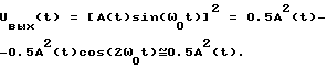 Комплексная амплитуда сигнала на выходе корректора![]() Такому представлению соответствует структура корректора фиг. 1. Действительно, комплексная амплитуда сигнала на первом входе синфазного сумматора 9 (на выходе первого канала) первого каскада корректора с учетом сдвига фазы сигнала в квадратурном разветвителе сигнала 6 равна JK11‘A . Величина коэффициента передачи этого канала K11‘ регулируется управляющим напряжением U01‘ на управляющем входе усилителя с регулируемым коэффициентом усиления (см. фиг. 12). Сигнал на втором входе синфазного сумматора 9 (на выходе второго канала) первого каскада корректора равна K11”A+K12”A2, где K11” – коэффициент передачи второго канала первого каскада корректора по амплитуде сигнала (управляется напряжением U01” на втором входе перемножителя 8), K12” – коэффициент передачи второго канала первого каскада корректора по квадрату амплитуды сигнала (управляется величиной огибающей снимаемой с первого выхода разветвителя огибающей сигнала 4; см. фиг. 10). Отсюда комплексная амплитуда сигнала на выходе синфазного сумматора 9 первого каскада корректора 5.1![]() где а1‘ = K12”; Аналогично находится комплексная амплитуда сигнала на выходе сумматора сигналов 9 второго каскада корректора 5.2![]() где K21” – коэффициент передачи второго канала второго каскада корректора по амплитуде входного сигнала Y1(А); JK21‘ – коэффициент передачи первого канала второго каскада корректора по комплексной амплитуде ;K22” – коэффициент передачи второго канала второго каскада корректора по комплексной амплитуде ![]() Рассуждая далее по аналогии, легко показать, что комплексная амплитуда сигнала на выходе n-го каскада корректора находится из соотношения ![]() которое с точностью до множителя совпадает с выражением (1). Таким образом, увеличение степени аппроксимирующего комплексный коэффициент передачи корректора по первой гармонике полинома на единицу добавляет в структуре предлагаемого корректора один каскад. В том случае, когда аппроксимация коэффициента передачи корректора по первой гармонике сигнала осуществляется полиномом почетным степеням, что в ряде случаев целесообразно с точки зрения сокращения числа членов полинома и, следовательно, упрощения структуры корректора, то ![]() Здесь А’ = А2, а А1‘ – корни полинома по степеням А’ = А2. Комплексная амплитуда сигнала на выходе корректора![]() Эта зависимость реализуется корректором со структурой фиг. 1, если в качестве амплитудного детектора 2 взять квадратичный амплитудный детектор. Действительно, комплексная амплитуда сигнала с выхода синфазного сумматора 9 первого каскада корректора 5.1 в этом случае при использовании обозначений аналогичных прежним ![]() а комплексная амплитуда сигнала на выходе корректора ![]() Это равенство с точностью до постоянного множителя совпадает с выражением (2). Квадратичный амплитудный детектор может быть реализован на микросхеме перемножителя сигналов по схеме фиг. 13, в которой на оба входа перемножителя подается один и тот же входной сигнал, а параллельно выходу подключен конденсатор, закорачивающий нагрузку перемножителя по высокочастотной составляющей выходного сигнала перемножителя, имеющей в два раза более высокую частоту, чем средняя частота входного сигнала. При этом напряжение на выходе перемножителя ![]() С целью проверки предложен