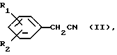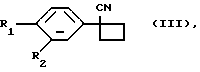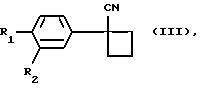 (57) Реферат: Описывается способ получения 1-арил-1-цианоциклобутана формулы (III), где R1 означает галоген, а R2 означает водород или галоген, включающий реакцию между 1,3-дигалоидпропаном, соединением формулы (IV), где R1 и R2 имеют вышеуказанное значение, и суспензией, содержащей основание, в среде органического растворителя, в качестве органического растворителя используют свободный в основном от диметилсульфоксида органический растворитель, способный поддерживать 1,3-дигалоидпропан и соединение формулы (IV) в растворенном состоянии при температуре реакции, а в качестве основания – гидроокись калия или натрия, процесс проводят в присутствии катализатора передачи фаз при температуре 35-80oС с последующей подачей воды. Технический результат – упрощение процесса и повышение выхода целевого продукта. 6 з. п. ф-лы, 3 табл.