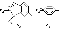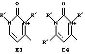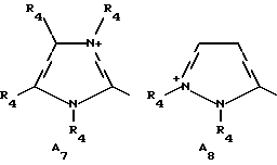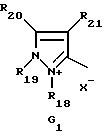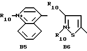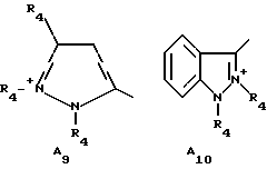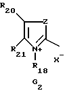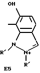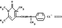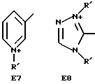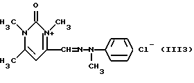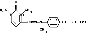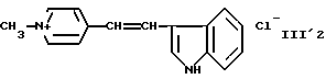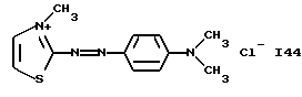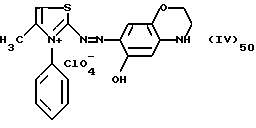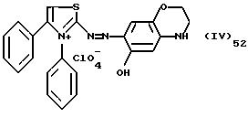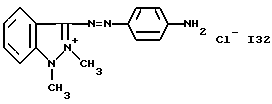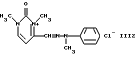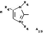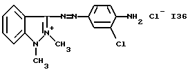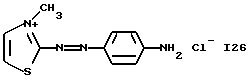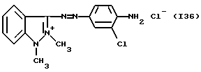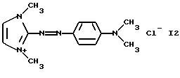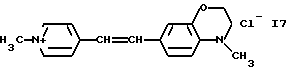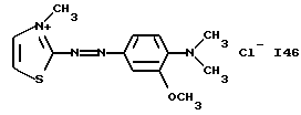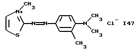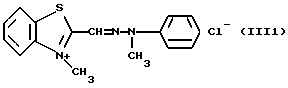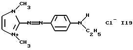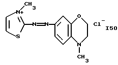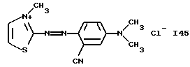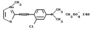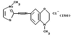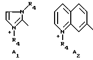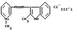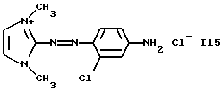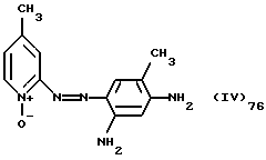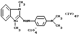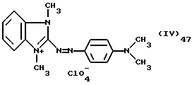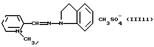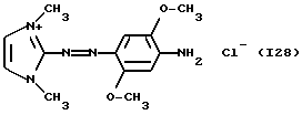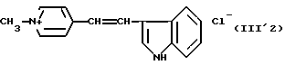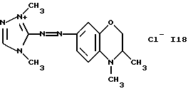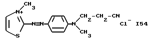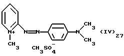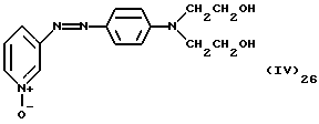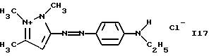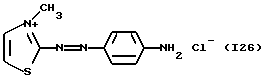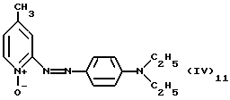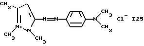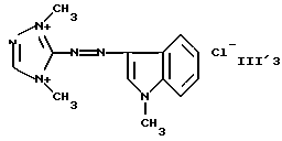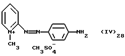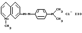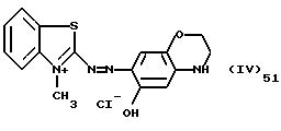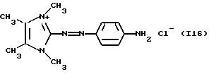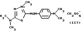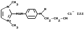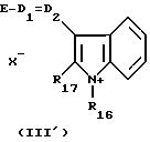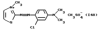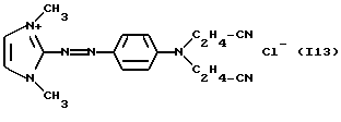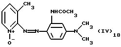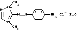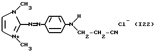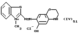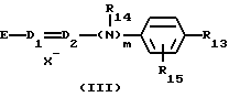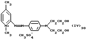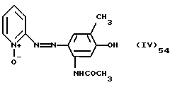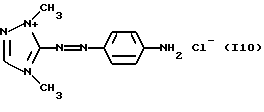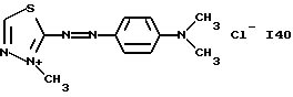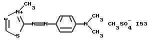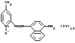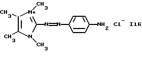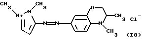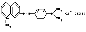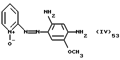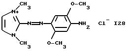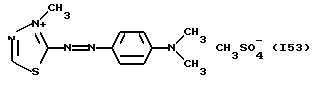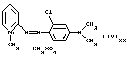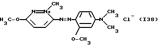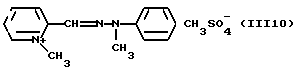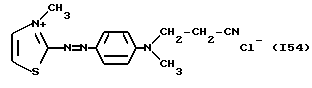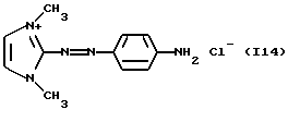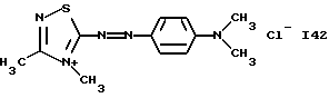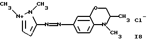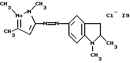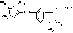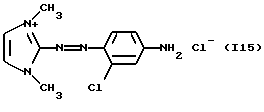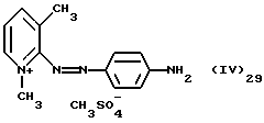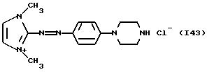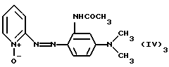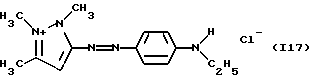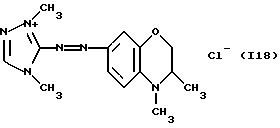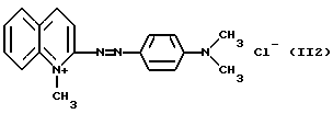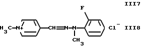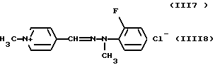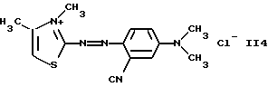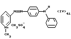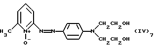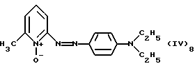 а) Соединения приведенной ниже формулы I ![]() в которой D обозначает атом азота или группу -СН, R1 и R2 одинаковые или разные, обозначают атом водорода: С1-С4-алкил, который может быть замещен радикалом -CN, -ОН или -NH2; или образуют вместе с атомом углерода бензольного цикла гетероцикл, который может быть кислород- или азотсодержащим и который может быть замещен одним или несколькими С1-С4-алкилами или радикал 4′-аминофенил; R3 и R’3, одинаковые или разные, обозначают атом водорода или галогена, выбранный из хлора, брома, йода или фтора; цианогруппу, С1-С4-алкил, С1-С4-алкокси- или ацетилоксигруппу; Х– обозначает анион, преимущественно выбранный из хлорида, метилсульфата и ацетата; А обозначает группу, выбранную из групп с приведенными ниже структурами А1-А19; ![]() ![]() ![]() ![]() ![]() ![]() ![]() ![]() ![]() ![]() в которых R4 обозначает С1-С4-алкил, который может быть замещен гидроксилом, и R5 обозначает радикал С1-С4-алкокси при условии, что когда D обозначает -СН, А обозначает А4 или А13 и R3 отличен от алкоксигруппы, то R1 и R2 не являются одновременно атомами водорода; b) Соединения приведенной ниже формулы II ![]() в которой R6 обозначает атом водорода или С1-С4-алкил; R7 обозначает атом водорода, алкил, который может быть замещен радикалом – СN или аминогруппой; радикал 4′-аминофенил; или вместе с R6 образует гетероцикл, который может быть кислород- и/или азотсодержащим и который может быть замещен С1-С4-алкилом; R8 и R9, одинаковые или разные, обозначают атом водорода или галоген, такой как хлор, бром, иод или фтор; С1-С4-алкил, С1-С4-алкокси или радикал -СN; Х– обозначает анион, преимущественно выбранный из хлорида, метилсульфата и ацетата; В обозначает группу, выбранную из групп с приведенными ниже структурами В1-В6; ![]() ![]() ![]() ![]() в которых R10 обозначает С1-С4-алкил, а R11 и R12, одинаковые или разные обозначают атом водорода или С1-С4-алкил; с) Соединения приведенных ниже формул III и III’ ![]() ![]() в которой R13 обозначает атом водорода, радикал С1-С4-алкокси, атом галогена (бром, хлор, иод или фтор) или аминогруппу; R14 обозначает атом водорода, радикал С1-С4-алкил или образует вместе с атомом углерода бензольного цикла гетероцикл, который может быть кислородсодержащим и/или замещенным одним или несколькими С1-С4-алкилами; R15 обозначает атом водорода или галоген (бром, хлор, иод или фтор); R16 и R17, одинаковые или разные, обозначают атом водорода или С1-С4-алкил; D1 и D2, одинаковые или разные, обозначают атом азота или группу -СН; m = 0 или 1; при условии, что, когда R13 обозначает незамещенную аминогруппу, то D1 и D2 одновременно обозначают группу -СН, а m = 0; Х– обозначает анион, преимущественно выбранный из хлорида, метилсульфата и ацетата; Е обозначает группу, выбранную из приведенных ниже структур Е1-Е8; ![]() ![]() ![]() ![]() ![]() в которых R’ обозначает С1-С4-алкил; когда m = 0 и D1 обозначает атом азота, то Е может также обозначать приведенную ниже структуру Е9: ![]() в которой R’ обозначает С1-С4-алкил; d) Соединения приведенной ниже формулы IV G-N= N-J (IV), в которой G обозначает группу, выбранную из приведенных ниже структур G1-G3: ![]() ![]() ![]() в которых R18 обозначает С1-С4-алкил, фенил, который может быть замещен С1-С4-алкилом, или атом галогена, (бром, хлор, иод или фтор); R19 обозначает С1-С4-алкил или фенил; R20 и R21, одинаковые или разные, обозначают С1-С4-алкил, фенил или вместе образуют в G1 бензольный цикл, замещенный одним или несколькими С1-С4-алкилами, С1-С4-алкокс