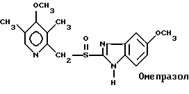 Пример 4Трехслойная таблетированная лекарственная форма с быстро распадающимся слоем, содержащим омепразол, разделительный слой и слой, содержащий альгиновую кислоту (размер партии – 1000 таблеток). ТАБЛЕТКИ Первый слой таблетки Альгиновая кислота – 500 г Натрий водород карбонат – 150 г Микрокристаллическая целлюлоза – 87 г Поперечно-сшитый поливинил пирролидон – 13 г Натрий стеарил фумарат – 3,8 г Разделительный слой Микрокристаллическая целлюлоза – 80 г Второй слой таблетки Гранулы с энтеросолюбильным покрытием, содержащие Мg-соль омепразола (приготовление и состав как описано в Примере 1) – 78,3 г Микрокристаллическая целлюлоза – 174 г Поперечно-сшитый поливинил пирролидон – 26 г Натрий стеарил фумарат – 1,4 г Альгиновую кислоту, натрий водород карбонат, микрокристаллическую целлюлозу, поливинил пирролидон и натрий стеарил фумарат смешивали в сухом виде и предварительно прессовали как первый слой на таблеточной машине, оборудованной овальными штампами размером 10 21 мм. Поверх первого слоя наносили микрокристаллическую целлюлозу для образования разделительного слоя перед следующим слоем.