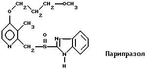 (57) Реферат: Изобретение относится к медицине и касается пероральной фармацевтической лекарственной формы, содержащей чувствительный к кислоте ингибитор протонного насоса и одно или несколько антацидных веществ или альгинат в фиксированном составе, в которой ингибитор протонного насоса защищен слоем энтеросолюбильного покрытия и необязательным разделительным слоем между ингибитором протонного насоса и энтеросолюбильным покрытием, фиксированный состав имеет форму многослойных таблеток, саше или сложных таблетированных лекарственных форм. Изобретение относится также к способам получения лекарственных форм. Новый фиксированный состав особенно применим при лечении расстройств, связанных с диспепсией, таких как изжога. Лекарственные формы упрощают для больного режим и схему лечения. 4 с. и 21 з. п. ф-лы, 3 ил. Область техники Настоящее изобретение относится к новым пероральным фармацевтическим препаратам, особенно для использования с целью профилактики и лечения диспептических симптомов, таких как боль и чувство дискомфорта в верхней части брюшной полости и изжога. Данные препараты включают сочетание различных веществ, подавляющих желудочный сок, таких как кислоточувствительный ингибитор протонного насоса и антацидное вещество (вещества) и/или альгинат в новой фиксированной сложной лекарственной форме, особенно в таблетированной форме. Далее, настоящее изобретение относится к способу получения таких препаратов и их использованию в медицине, особенно для устранения диспептических симптомов. Предпосылки изобретения Диспепсия представляет собой обычное расстройство, и пациенты обращаются по такому поводу как к гастроэнтерологам, так и к терапевтам. Симптомом диспепсии является изжога. Подсчитано, что 44% американцев страдают от изжоги по крайней мере ежемесячно, а некоторые из них вынуждены обращаться к врачу, но только около 25% пациентов обращаются к врачу по поводу диспепсии. Симптомами, ассоциируемыми с диспепсией, являются, например, боль и чувство дискомфорта в верхней части брюшной полости и изжога, расстройство пищеварения, повышенная кислотность желудка, изжога и другие желудочно-пищеводные расстройства, включая желудочно-кишечный рефлюкс. Большое разнообразие симптомов и тяжести заболеваний, связанных с желудочно-пищеводным рефлюксом, привело к необходимости более индивидуального подхода к лечению. Терапевтические вещества, эффективные при лечении диспепсии, включают вещества, подавляющие желудочный сок, такие как антагонисты рецептора Н2, ингибиторы протонного насоса, другими веществами, представляющими интерес, являются антациды/альгинаты и прокинетические вещества. Эти вещества могут различаться по механизму их действия, безопасности, фармакокинетическим свойствам и показаниям. WО 95/01780 описывает композицию для лечения, например, изжоги, включающую антагонист рецептора Н2, такой как фамотидин, и альгинат и, необязательно, симетикон. Антацидные вещества и альгинаты могут использоваться отдельно для лечения изжоги. У них короткий срок действия, однако они недороги и безопасны. Антацидные вещества оказывают местное действие через нейтрализацию желудочной кислоты. Кроме того, альгинаты механически защищают пищевод от рефлюкса или желудочной кислоты. Главным преимуществом антацидных ве