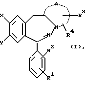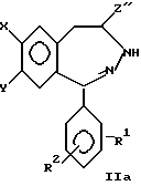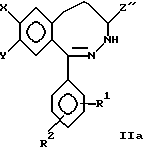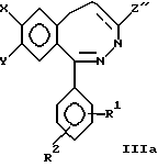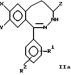 (57) Реферат: Описываются производные 2,3-бензодиазепина общей формулы I, где R1 обозначает водород, нитро, галоген, NH2, R2 обозначает водород, R3 и R4, одинаковые или различные, обозначают водород, галоген, C1-6-алкокси, PO3R13R14, C1-6-алканоил, в случае необходимости замещенный галогеном или С1-6-алкоксигруппой C1-6-алкил, С3-7-циклоалкил, фенил или пиридил, R13, R14, одинаковые или различные, обозначают водород или C1-6-алкил, Х обозначает водород или галоген, Y обозначает C1-6-алкокси или Х и Y вместе обозначают – O-(СН3)n-O-, где n обозначает 1, А вместе с атомом азота образует насыщенный или ненасыщенный пятичленный гетероцикл, который может содержать 1-3 атома азота или один атом азота и один атом кислорода, и/или одну или две карбонильные группы, а также их изомеры и физиологически приемлемые соли; промежуточные соединения IIa и IIIa, используемые в их синтезе, и средство, обладающее ингибирующей активностью в отношении АМРА-рецепторов и содержащее соединение I. Соединения I являются ингибиторами АМРА-рецепторов и могут быть использованы для лечения заболеваний центральной нервной системы. 3 с. и 2 з. п. ф-лы. ![]() ![]()