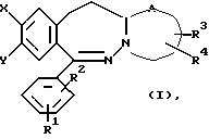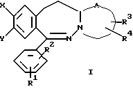 При нагревании метилтиопроизводного бензодиазепина с -аминоацеталями H2N-CR3Н-CH-(O-алкил)2, H2N-CH2CR4-(О-алкил)2 или H2N-CR3H-CR4-(О-aлкил)2 в присутствии кислоты, такой как п-толуолсульфокислота, получают соединения формулы I с А в значении = N-CR3= CH-, = N-CH= CR4– или = N-СR3= CR4-.
