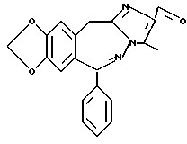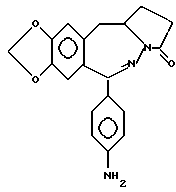 8-(метоксикарбонил)-5-(4-нитрофенил)-9Н-1,3-диоксоло[4,5-h] [2,3] бензодиазепин8,0 г (22,0 ммоль) полученного согласно стадии А соединения суспендируют в 390 мл метанола и после добавления 4,2 мл (34,4 ммоль) бортрифторидэфирата смесь нагревают в течение 3 часов с обратным холодильником. Растворитель сливают, остаток помещают в дихлорметан и 100 мл 10% раствора Na2CO3 и перемешивают в течение 30 минут. Полученный после обработки (здесь и в последующих примерах “обработка” означает: органическую фазу промывают водой, фильтруют и концентрируют) неочищенный продукт очищают колоночной хроматографией (силикагель, элюент: бензол/этилацетат 20: 1) и получают 3,86 г (46%) соединения, указанного в заголовке, с точкой плавления 235-238oС (разложение). С. 8-(метоксикарбонил)-5-(4-нитрофенил)-8,9-дигидро-7Н-1,3-диоксоло[4,5-h] [2,3] бензодиазепин Суспензию 2,94 г (8,0 ммоль) полученного согласно стадии В соединения в 30 мл дихлорметана соединяют при перемешивании с 15 мл трифторуксусной кислоты. Добавляют 6,3 мл (40 ммоль) триэтилсилана и перемешивают в течение 24 часов при комнатной температуре. Затем смешивают с 30 мл дихлорметана и при перемешивании и охлаждении ледяной водой добавляют раствор 12,3 г Na2CO3 в 60 мл воды. Полученный после обработки остаток обрабатывают 20 мл метанола и получают 2,85 г (96%) соединения, указанного в заглавии, с точкой плавления 161-164oC. D. 9-метил-5-(4-нитрофенил)-11Н-1,3-диоксоло[4,5-h] имидазо[3,4-с] [2,3] бензодиазепин-8,10(9Н, 10аН)-дион 0,85 г (2,3 ммоль) полученного согласно стадии С соединения растворяют в 30 мл дихлорметана и дают реагировать в течение 3 недель при комнатной температуре с 1,0 мл (17,5 ммоль) метилизоцианата. Растворитель сливают и остаток очищают кипячением с метанолом. После отсасывания получают 0,77 г (84%) продукта с точкой плавления 242-244oС (разложение). Пример 2 5-(4-аминофенил)-9-метил-11Н-1,3-диоксоло[4,5-h] имидазо[3,4-с] [2,3] бензодиазепин-8,10(9Н, 10аН)-дион ![]() 0,61 г (1,55 ммоль) полученного согласно Примеру 1 нитросоединения восстанавливают смесью RaNi/гидразингидрат в смеси дихлорметан/метанол 2: 1. Катализатор отфильтровывают, раствор концентрируют, кристаллический остаток промывают водой и получают 0,54 г (54%) целевого соединения с точкой плавления >270oС (разложение). Пример 3 9-метил-5-(4-нитрофенил)-9,10,10а, 11-тетрагидро-8Н-1,3-диоксоло[4,5-i] имидазо[3,4-с] [2,3] бензодиазепин-8-он ![]() А. 8-[(метилимино)метил] -5-(4-нитрофенил)-9Н-1,3-диоксоло[4,5-h] [2,3] бензодиазепин 2,0 г (5,9 ммоль) 8-формил-5-(4-нитрофенил)-9Н-1,3-диоксоло[4,5-h] [2,3] бензодиазепина растворяют в 100 мл смеси дихлорметан-метанол 1: 1, смешивают с 40 мл 33% раствора метиламина в этаноле и выдерживают в течение 24 часов при комнатной температуре. Затем растворитель сливают и остаток кипятят с 25 мл этанола. После фильтрования получают 1,95 г (93%) целевого соединения с точкой плавления 245-247oС (разложение). В. 5,5 г (15,7 ммоль) полученного согласно стадии А имина суспендируют в 800 мл этанола и соединяют порциями при перемешивании с 26 мл концентрированной НСl. К полученному раствору добавляют 13,6 г (0,36 ммоль. ) NaBH4 на протяжении 1 часа небольшими порциями. Смесь перемешивают в течение 30 минут, фильтруют, концентрируют фильтрат и очищают остаток колоночной хроматографией с метанолом в качестве элюента. Получают 3,67 г (66%) 8-[(метиламинометил] -5-(4-нитрофенил)-9Н-1,3-диоксоло[4,5-h] [2,3] бензодиазепина с точкой плавления 110-112oС. С. 9-метил-5-(4-нитрофенил)-9,10,10а, 11-тетрагидро-8Н-1,3-диоксоло[4,5-i] имидазо[3,4-с] [2,3] б