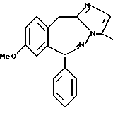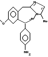 Аналогичным образом из соответствующих тионов получают:8-метокси-2-метил-6-фенил-11Н-имидазо[1,2-с] [2,3] бензодиазепин, т. пл. 173oС. 8-метокси-3-этил-6-фенил-11Н-имидазо[1,2-с] [2,3] бензодиазепин, т. пл. 135oC. 8-метокси-6-фенил-3-(4-пиридил)-11Н-имидазо[1,2-с] -[2,3] бензодиазепин2, Т. пл. 178oC. 8-метокси-6-фенил-3-(2-пиридил)-11Н-имидазо[1,2-с] -[2,3] бензодиазепин2, разложение. 8-метокси-6-фенил-3-(3-пиридил)-11Н-имидазо[1,2-с] -[2,3] бензодиазепин2, Т. пл. 144oС. 3,6-дифенил-8-метокси-2-метил-11Н-имидазо[1,2-c] [2,3] -бензодиазепин, Т. пл. 143oC. 8-метокси-6-(4-нитрофенил)-3-(2-пиридил)-11Н-имидазо-[1,2-с] [2,3] бензодиазепин, 8-метокси-6-(4-нитрофенил)-3-(4-пиридил)-11Н-имидазо-[1,2-с] [2,3] бензодиазепин, Т. пл. 223oC. 5-(4-хлорфенил)-8,9-диметил-11Н-имидазо[-1,2-с] [2,3] бензодиазепин, Т. пл. >300oC. 9-этил-8-метил-5-(4-нитрофенил)-11Н-1,3-диоксоло[4,5-h] имидазо[1,2-с] [2,3] бензодиазепин, 8-этил-9-метил-5-(4-нитрофенил)-11Н-1,3-диоксоло[4,5-h] -имидазо[1,2-с] [2,3] бензодиазепин, 5-(4-нитрофенил)-8-(4-пиридил)-11Н-1,3-диоксоло[4,5-h] -имидазо[1,2-с] [2,3] бензодиазепин2, 8,9-диметил-5-фенил-11Н-1,3-диоксоло[4,5-h] имидазо[1,2-с] [2,3] бензодиазепин. Т. пл. 177oC. 2 Соответствующие кетели получают согласно Org. Synth. 64, 19, (1986). Пример 48 2,3-диметил-6-(4-нитрофенил)-8-метокси-11Н-имидазо[1,2-с] [2,3] бензодиазепин ![]() 2,3 г 8-метокси-1-(4-нитрофенил)-4,5-дигидро-3Н-2,3-бензодиазепин-4-тиона перемешивают с 3 мл 2-амино-3,3-диметоксибутана (полученного восстановительным аминированием согласно J. Org. Chem. 52, (12), 2616 из 3,3-диметоксибутан-2-она) при пропускании аргона в течение 4 часов при температуре бани 110oС. Исходную смесь смешивают с 50 мл 1 н. соляной кислоты, разбавляют водой до 100 мл и трижды экстрагируют 150 мл этилацетата. Водную фазу подщелачивают 1 н. гидроксидом натрия и трижды экстрагируют этилацетатом. Объединенные органические фазы сушат, фильтруют и концентрируют и остаток хроматографируют через силикагель со смесью метиленхлорид: этанол 10: 1 в качестве элюента. Получают 1,5 г 2,3-диметил-6-(4-нитрофенил)-8-метокси-11Н-имидазо[1,2-с] -[2,3] бензодиазепина. Аналогичным образом получают: 6-(4-бромфенил)-2,3-диметил-8-метокси-11Н-имидазо[1,2-с] [2,3] бензодиазепин, Т. пл. >300oС. 2,3-диметил-8-метокси-6-фенил-11Н-имидазо[1,2-с] [2,3] -бензодиазепин, Т. пл. 178oC. 8,9-диметил-5-(4-фторфенил)-11Н-1,3-диоксоло[4,5-h] -имидазо[1,2-с] [2,3] бензодиазепин. Т. пл. >300oC. Пример 49 А. 6-(4-аминофенил)-2,3-диметил-8-метокси-11Н-имидазо[1,2-с] [2,3] бензодиазепин ![]() 834 мг 2,3-диметил-8-метокси-6-(4-нитрофенил)-11Н-имидазо[1,2-с] [2,3] бензодиазепина в 33 мл ледяной уксусной кислоты вместе с 2,25 г порошка железа нагревают в нагретой до 90oС масляной бане в течение 20 минут. Смесь отсасывают в горячем виде и затем промывают ледяной уксусной кислотой. Фильтрат концентрируют и остаток распределяют в этилацетате и 1 н. растворе едкого натра. Водную фазу еще раз встряхивают с этилацетатом и объединенную органическую фазу промывают водой, сушат, фильтруют и концентрируют. Этот остаток хроматографируют через силикагель со смесью метиленхлорид: этанол 10: 1. После размешивания соответствующих сконцентрированных фракций со смесью этилацетат/гексан получают 331 мг 6-(4-аминофенил)-2,3-диметил-8-метокси-11Н-имидазо[1,2-с] -[2,3] бензодиазепина с точкой плавления 280oС. Аналогичным образом получают: 6-(4-аминофенил)-8-метокси-3-(2-пиридил)-11Н-имидазо-[1,2-с] [2,3] бензодиазепин, 6-(4-аминофенил)-8-метокси-3-(4-пиридил)-11Н-имидазо-[1,2-с] [2,3] бензодиазепин, 5-(4-аминофенил)-9-бром-8-метил-11Н-1,3-диоксоло[4,5-h] имидазо[1,2-с] [2,3] бензодиазепин, т. пл. >300oC. 5-(4-аминофенил)-8-бром-9-метил-11