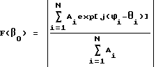 имеет максимальное значение. Поиск проводится в диапазоне углов 0-360o с мелким (один-два градуса) шагом. Значения функции F для принятого набора данных амплитуд Аi и фаз