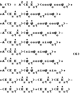 Можно показать, что для функции корреляции квадратурных составляющих и их производных справедливы соотношения [3]![]() где ![]() ( ) и ![]() ( )- первая и вторая производные коэффициента корреляции квадратурных составляющих узкополосного шума. С учетом (7) выражение (6) для функции корреляции выходного шума можно записать в виде![]() где ![]() c = c(t+ )- c(t)- приращение фазы ЧМ сигнала на интервале .Будем считать, что информационное сообщение (t) является нормальным случайным процессом с нулевым математическим ожиданием, единичной дисперсией и спектральной плотностью![]() Тогда можно показать, что средние значения выражений, входящих в (8), будут равны ![]() ![]() ![]() где дисперсия отклонения частоты ЧМ сигнала; дисперсия флуктуаций фазы ЧМ сигнала; c( ) = exp(- 2 2) – коэффициент корреляций флуктуаций фазы ЧМ сигнала; нормированное значение первой производной коэффициента корреляции флуктуаций фазы ЧМ сигнала; нормированное значение второй производной коэффициента корреляции флуктуаций фазы ЧМ сигнала.