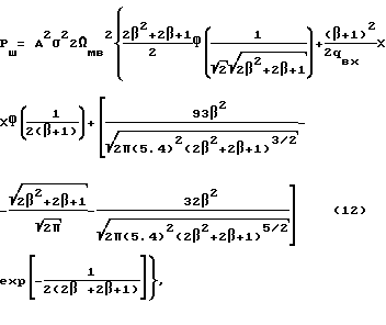 Для определения спектральной плотности шума на выходе перемножителя будем считать, что спектральная плотность шума определяется гауссовской зависимостью. Тогда для коэффициента корреляции квадратурных составляющих узкополосного шума и его производных будем иметь ( ) = exp(- 2 2);![]() ( ) = -2 2 exp(- 2 2);![]() ( ) = -2 2(1-2 2 2)exp(- 2 2).С учетом приведенных допущений для функции корреляции шума на выходе перемножителя получим ![]() Для вычисления спектральной плотности шума на выходе перемножителя 7 уточним соотношение величин д, , , входящих в (10). Полоса пропускания усилителя промежуточной частоты 2, равная среднеквадратической ширине спектра узкополосного шума, определяется равенством![]() где мв– верхняя модулирующая частота спектра информационного сообщения.