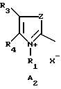 A-N= N-B, (1) в которой А обозначает группу, выбираемую из приведенных ниже структур А1-А3: ![]() ![]() ![]() в которых R1 обозначает радикал С1-С4-алкил или фенил, который может быть замещен С1-С4-алкилом или атомом галогена, выбранным из атомов хлора, брома, йода и фтора; R2 обозначает С1-С4-алкил или фенил; R3 и R4, одинаковые или различные, обозначают С1-С4-алкил, фенил или, в случае структуры А1, могут вместе образовывать бензольный цикл, замещенный одним или несколькими С1-С4-алкил, С1-С4-алкоксигруппами или группой NO2, или, в случае структуры А2, могут вместе образовывать бензольный цикл, который может быть замещен одним или несколькими С1-С4-алкилами, С1-С4-алкоксигруппами или нитрогруппой; R3 может быть, кроме того, атомом водорода; Z обозначает атом кислорода, серы или группу -NR2; М обозначает группу -СН, -CR(R= С1-С4-алкил) или -NR5(X–)r; К обозначает группу -СН, -CR(R= С1-С4-алкил) или -NR5(X–)r; Р обозначает группу -СН, -CR(R= С1-С4-алкил) или -NR5(X–)r, где r = 0 или 1; R5 обозначает атом O–, радикал С1-С4-алкокси или С1-С4-алкил; R6 и R7, одинаковые или различные, обозначают атом водорода или галоген, выбираемый из хлора, брома, йода и фтора, радикал 1-С4-алкил, С1-С4-алкокси или нитрогруппу; Х– обозначает анион, выбираемый преимущественно из хлорида, иодида, метилсульфата, этилсульфата, ацетата и перхлората; при условии что если R4 обозначает С1-С4-алкил, а Z атом серы, R3 не может быть атомом водорода; если R5 обозначает O–, то r = 0; если К или Р или М обозначает -N(С1-С4-алкил)X–, то R6 или R7 отличен от атома водорода; если К обозначает -NR5(X–)r, то М= P и обозначает -СН или -CR; если М обозначает -NR5(X–)r, то К= P и обозначает -СН или -СR; если Р обозначает -NR5(X–)r, то К= М и обозначает -СН или -CR; если Z обозначает -NR2 и R2 обозначает С1-С4-алкил, то по крайней мере один из радикалов R1, R3 и R4 группы в структуре А2 не является С1-С4-алкилом; В обозначает: (а) группу структуры В1: ![]() в которой R8 обозначает атом водорода, атом галогена, выбранный из брома, хлора, йода или фтора, радикал С1-С4-алкил, С1-С4-алкокси, радикал -ОН, -NO2, -NHR11, -NR12R13, -NHCO(С1-С4-алкил) или вместе с R9 образует пяти- или шестичленный цикл, содержащий или не содержащий один или несколько гетероатомов, выбранных из азота, кислорода или серы; R9 обозначает атом водорода, атом галогена, выбранный из брома, хлора, йода или фтора, радикал С1-С4-алкил, С1-С4-алкокси или вместе с R10 и R11 образует пяти- или шестичленный цикл, содержащий или не содержащий один или несколько гетероатомов, выбранных из азота, кислорода или серы; R10 обозначает атом водорода, радикал -ОН, -NHR11 или NR12R13; R11 обозначает атом водорода, С1-С4-алкил, радикал моногидрокси-С1-С4-алкил, полигидрокси-С2-С4-алкил или фенил; R12 или R13, одинаковые или различные, обозначают С1-С4-алкил, радикал моногидрокси-С1-С4-алкил или полигидрокси С2-С4-алкил; (б) пяти- или шестичленную азотсодержащую гетероциклическую группу, способную включать и другие гетероатомы и/или карбонильные группы и которая может быть замещена одним или несколькими С1-С4-алкилами, аминогруппой или фенилом, в частности, группу структуры В2: ![]() в которой R14 и R15, одинаковые или различные, обозначают атом водорода, С1-С4-алкил или фенил; Y обозначает радикал -СО- или радикал -С(СН3)= ; n = 0 или 1, причем, когда n= 1, U обозначает радикал -СО-; композиция, кроме того, содержит по меньшей мере один загущающий полимер, выбранный из группы, содержащей: (ii)1 – неионные гуаровые смолы; (ii)2 – биополисахаридные с