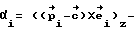 Пусть произвольная фиксированная относительно манипулятора в данный момент времени точка опорной поверхности. Поскольку в силу вышеуказанных свойств колесного однокоординатного датчика линейных перемещений i-й датчик измеряет проекцию перемещения точки измерения относительно опорной поверхности на направление то для любого i имеет место соотношение , где проекция указанного векторного произведения на ось, перпендикулярную опорной поверхности, перемещение точки относительно опорной поверхности в системе координат, связанной с манипулятором, d – поворот манипулятора относительно оси, перпендикулярной опорной поверхности. (…,…) обозначает скалярное, а (…x…) – векторное произведение векторов.