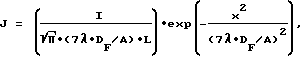 На фиг.3Д показано распределение интенсивности потока ионов бегущего ленточного ионного пучка на поверхности кремния в плоскости падения ионов. Кривая OFED изображает профиль поверхности кремния, облучаемый ионами. Глубина образования волнообразной структуры – DF, локальный угол наклона поверхности кремния – ![]() , скорость движения пучка по поверхности кремния в плоскости падения ионов – Vх. Ширина ленточного пучка в плоскости поверхности кремния – OW. Фронт когерентного роста волн – FE. Расстояние LE равно двум с половиной длинам волн структуры. Глубина FL есть разность глубин DF и Dm и приблизительно равна амплитуде волны А.