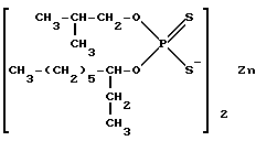 Недостатками данного способа являются:1. Применение в качестве реагента и катализатора токсичного сероводорода, что требует особых условий безопасного ведения процесса. 2. Образование в присутствии сероводорода меркаптанов, придающих получаемой серусодержащей присадке трудно переносимый запах. 3. Необходимость удаления сероводорода и образующихся меркаптанов из полученной серусодержащей присадки с целью придания последней требуемых органолептических свойств. 4. Наличие значительного количества газовых выбросов, содержащих сероводород и меркаптаны. Наиболее близким к заявляемому изобретению является способ получения серусодоржащей присадки взаимодействием этиленовых углеводородов, например изобутилена с элементарной серой в присутствии аминоспиртов или морфолина при повышенном давлении и температуре 130oC /ЕР 0714971, 05.06.96 г., кл. С 10 М 135/04/. На 1,285 моль изобутилена подают 2,3-4,9 моль моноэтаноламина, 2-7 моль серы. Содержание серы в готовой присадке составляет 40-65 мас.%. В случае использования в качестве исходного сырья более высокомолекулярного дициклопентадиена содержание серы в полученном продукте реакции не превышает 19,3 мас.% (пример 10). Недостатками данного способа являются: 1. Применение большого избытка инициатора реакции – моно- либо диэтаноламина или морфолина: на 1 моль изобутилена подают от 1,78 до 3,81 моль аминоспирта. 2. Необходимость очистки серусодержащей присадки от инициатора. Полученную присадку экстрагируют из реакционной массы н-гептаном, экстрактный раствор промывают 10% содой и водой. На конечной стадии н-гептан отделяют от присадки ректификацией под вакуумом. Все эти операции усложняют технологию процесса и приводят к образованию значительного количества сточных вод и отходов производства – отработанных аминоспиртов. 3. Сульфированные изобутилены с высоким содержанием серы из-за низкой температуры вспышки менее 100oС не могут применяться для холодной объемной штамповки, при которой на поверхности металла достигается температура 500-550oС, и осерненные изобутилены будут испаряться и отравлять окружающую среду. Кроме того, они обладают неприятным запахом, что также недопустимо для присадок к технологическим смазкам. Именно поэтому для получения серусодержащих присадок к технологическим смазкам в качестве исходного сырья используют фракции олефиновых углеводородов выше С12Н24. Задача, на решение которой направлено предполагаемое изобретение, заключается в упрощении технологии процесса. Для решения указанной задачи способ получения серусодержащсй присадки взаимодействием олефинов фракции С16-С26 либо дициклопентана с серой при повышенной температуре 130-150oС осуществляют в присутствии каталитических количеств (0,5-5 мас.% на сырье) диалкилдитиофосфата цинка формулы ![]() где R – изо-С3Н7 или изо-C4Н9; R’ – н-С12Н25 или изо-С9Н19. При этом содержание серы в присадке составляет 30-35 мас.%. Синтезированные серусодержащие присадки без какой-либо последующей переработки и выделения катализатора могут быть использованы для получения различных технологических смазок и трансмиссионных масел. Способ осуществляют следующим образом. В термостатированный реактор, снабженный эффективной мешалкой, холодильником, термометром, загружают олефины фракции С16-С26 либо дициклопентадиен и 0,5-5 мас. % по отношению к исходному сыр