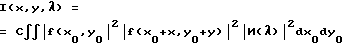 ) – описывает спектральные характеристики источника излучения. Этот сигнал, представляющий собой картину спектрального состава протяженного источника излучения, можно наблюдать после фильтра 4, например, визуально или с помощью телекамеры и компьютера, при этом разрешение устройства определяется размером корреляционного сигнала объекта, использующегося в качестве маски 2. На фиг. 4 показан сигнал, представляющий собой картину спектрального состава протяженного источника излучения, получаемый в данном устройстве при использовании в качестве источника излучения ртутной лампы.