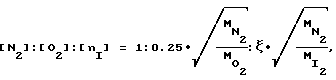 Рассмотрим вначале вопрос об определении концентрации йода в атмосферном воздухе. Учитывая, что основными компонентами воздуха являются молекулярные кислород и азот (остальные компоненты можно не учитывать), и процентное соотношения между ними известно [4], мы имеем для соотношения концентраций азота, кислорода и йода следующее выражение:[N2]:[O2]:[nI] = 1:0.25: ,где [N2] , [О2] и [n1] – концентрации азота, кислорода и йода, соответственно; – доля йода в воздухе.