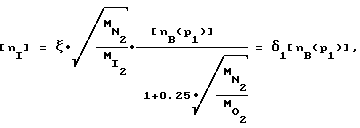 При прокачке части анализируемой смеси через исследуемую ячейку при давлении p1 соотношение между концентрациями газов меняется, принимая вид: