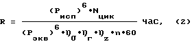 Проведенный расчет эквивалентных нагрузок на конкретный элемент агрегата несущей системы с учетом полученной от эксплуатанта повторяемости режимов, взлетного веса, высоты полета, температур наружного воздуха, центровки по вышеприведенной формуле дает возможность провести сравнение полученной эквивалентной нагрузки Рэкв с эквивалентной нагрузкой Рисп, приведенной в заключении по ресурсу указанного агрегата, которая определяется по типовой повторяемости режимов полета, взлетного веса, высоты и др., учитывающей и боевое применение вертолета. На основании их соотношения определяют величину, отражающую техническое состояние агрегата R (час) по известной формуле: