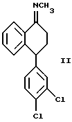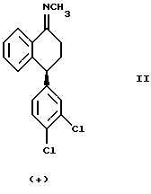 ![]() или оптически обогащенной (+)-энантиомером смеси указанного соединения формулы II и его противоположного энантиомера, который включает взаимодействие оптически чистого (+)-энантиомера 4-(3,4-дихлорфенил)-3,4-дигидро-1(2Н)-нафталинона (“тетралона”) формулы I ![]() или оптически обогащенной (+) смеси (+) и (-)-энантиомеров тетралона с монометиламином и либо тетрахлоридом титана, либо молекулярными ситами. 2. Способ получения смеси цис-(+)-сертралина (“сертралин”) и транс-(-)-сертралина, включающий: а) получение оптически чистого (+)-энантиомера соединения формулы (II) (кетимин), причем указанное получение осуществляют способом по п. 1; б) гидрирование полученного на стадии (а) кетимина с получением смеси цис-(+)-сертралина и транс-(-)-сертралина; в) необязательно, выделение сертралина из полученной смеси и г) необязательно, превращение сертралина в его соль – гидрохлорид или манделат. 3. Способ по п.1, в котором используют избыток монометиламина по отношению к исходному тетралону. 4. Способ по п.1, в котором реакцию проводят при температуре в интервале от около -20oС до около 60oС. 5. Способ по п.1, в котором растворитель выбирают из ТГФ, дихлорметана, ксилолов и дихлорбензола. 6. Способ по п.1, в котором монометиламин и хлорид титана взаимодействуют с тетралоном. 7. Способ по п.1, в котором тетралон взаимодействует с монометиламином и молекулярными ситами. 8. Способ получения смеси, состоящей из оптически чистых цис-(+)-сертралина и транс-(-)-сертралина, или смеси, состоящей из цис-(+)-сертралина, цис-(-)-сертралина, транс-(+)-сертралина и транс-(-)-сертралина, включающий: а) получение оптически чистого (+)-энантиомера соединения формулы (II) (кетимин) или оптически обогащенной (+)-энантиомером смеси указанного соединения формулы (II) и его (-)-энантиомера, причем указанное получение осуществляют способом по п.1; и б) гидрирование полученного на стадии (а) продукта in situ в том же растворителе, в котором он был получен. 9. Способ получения смеси цис-(+)-сертралина и транс-(-)-сертралина, который включает взаимодействие оптически чистого (+)-энантиомера 4-(3,4-дихлорфенил)-3,4-дигидро-1(2Н)-нафталинона (“тетралон”) формулы I ![]() или оптически обогащенной (+)-энантиомером смеси (+)- и (-)- энантиомеров тетралона с монометиламином и либо тетрахлоридом титана, либо молекулярными ситами и подходящим катализатором гидрирования в подходящем органическом растворителе в атмосфере водорода при давлении от около 1406 (20 psig) до около 7031 кг/см2 (100 psig) при температуре от комнатной температуры до около 70oС. РИСУНКИ