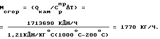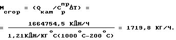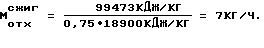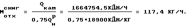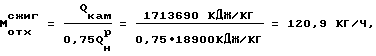 Расход тепла на обработку отходов в камере 9 составит величинуQкам=(Qнагр отх+Qисп в+Qтерм) 1,1, (3)Qнагр отх=Ср отхМотхТотх=1,9 кДж/кгoС 500 кг/ч (180oС-15oС)=156750 кДж/чQисп в=Ср вМв(100oС-15oС)+Ср пМв(180oС-100oС)+2257 кДж/кг Мв= 4,18 кДж/кгoС 500кг/ч 85oС+2 кДж/кгoС 500 кг/ч 80oС+2257 кДж/кг 500кг/ч= 1386150 кДж/чQтерм=qтерм Мотх=30 кДж/кг 500 кг/ч=15000кДж/ч,где Ср отх=1,9 кДж/кгoС – удельная теплоемкость абсолютно сухих древесных отходов; Ср в – удельная теплоемкость воды; Ср п=2 кДж/кгoС- удельная теплоемкость водяного пара; Мв= 500 кг/ч – масса испаряемой влаги в камере 9; Tотх = (180 C-15 C) – разность температур отходов на входе в камеру (15oС) и на выходе из камеры (180oС);(180oС – 100oС) – величина перегретого водяного пара; 2257 кДж/кг – теплота испарения влаги отходов; Qтерм = 30 кДж/кг – поглощаемое тепло при разложении древесины в интервале 150-180oС. Таким образом, с учетом 10% теплопотерь расход тепла в камере 9 составит величину Qкам = (156750 + 1386150 + 15000) 1,1 = 1713690 кДж/ч.