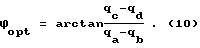В целях определения фазы opt пикселя из полученных в результате амплитуд корреляции использование, как сформулировано выше, целиком всех четырех различных интерферограмм в случае четырех различных фаз сигнала смесителя. Четыре фазы сигнала смесителя возникают в ситуации, где напряжения Uam и Ubm модуляционных фотовентилей переключают из состояния фазового соотношения 0o/180o в состояние 90o/270o или задержанного на 90o. Это дает возможность получить две связанные мнимую или квадратурную (сдвинутую на 90o) составляющие относительно реальных или находящихся в фазе составляющих, из которых отыскиваемую фазу пикселя можно вычислить в соответствии с уравнением (10), описанным ниже.