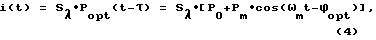Эта процедура подробно описывается ниже. Поле ВЧ-дрейфа, возникающее под действием напряжения Uam(t) и Ubm(t), действует таким образом, что электроны дрейфуют к соответствующей положительной стороне. Во время, например, положительной полуволны напряжения Uam(t) = U0 + Um(t) модуляционных фотовентилей, то есть во время отрицательной полуволны Ubm(t) = U0 – Um(t), фотогенерируемые носители заряда будут дрейфовать к накопительному вентилю Ga и накапливаться там или передаваться в виде количества заряда qa (смотри два верхних распределения напряжений модуляционных фотовентилей на фиг.1b и с). Фиг. 3, для случая стабильного, гармоничного, модулированного освещения, представляет оптическую мощность пиксель в видеPopt(t- ) = P0+Pmcos( t- opt) (3)где Р0 – среднее значение, содержащее фоновое освещение, Рm – амплитуда модуляции, wm – частота ВЧ-модуляции, opt – – фазовая задержка и = opt/ m – соответствующая задержка времени прохождения падающей световой волны относительно фазы модуляции в Gm. Результирующее значение фототока, который вырабатывается в пикселе, равно:![]() i(t) = I0+Im cos( mt- opt) (5)с параметрами I0 = среднее значение фототока пикселя в соответствии с Р0, Im = чередующаяся амплитуда модулированного фототока в соответствии с Рm и S = спектральная чувствительность. Этот полный фототек в пикселе делят на две составляющие, а более конкретно – на ток ia(t) накопительного вентиля Ga и на ток ib(t) накопительного вентиля Gb. Так как эти значения интегрируют в ПЗС-технологии под соответствующими накопительными вентилями Ga и Gb и в случае КМОП-технологии, в которой происходит считывание пиксель-образным способом предпочтительно в электронной системе считывания – достаточно в дальнейшем для рассмотрения, которое далее приводится для среднего значения ia и ib этих токов. Максимум в терминах разделения зарядов достигается для угла opt = 0 и = 0. Эта ситуация представлена на фиг.3.